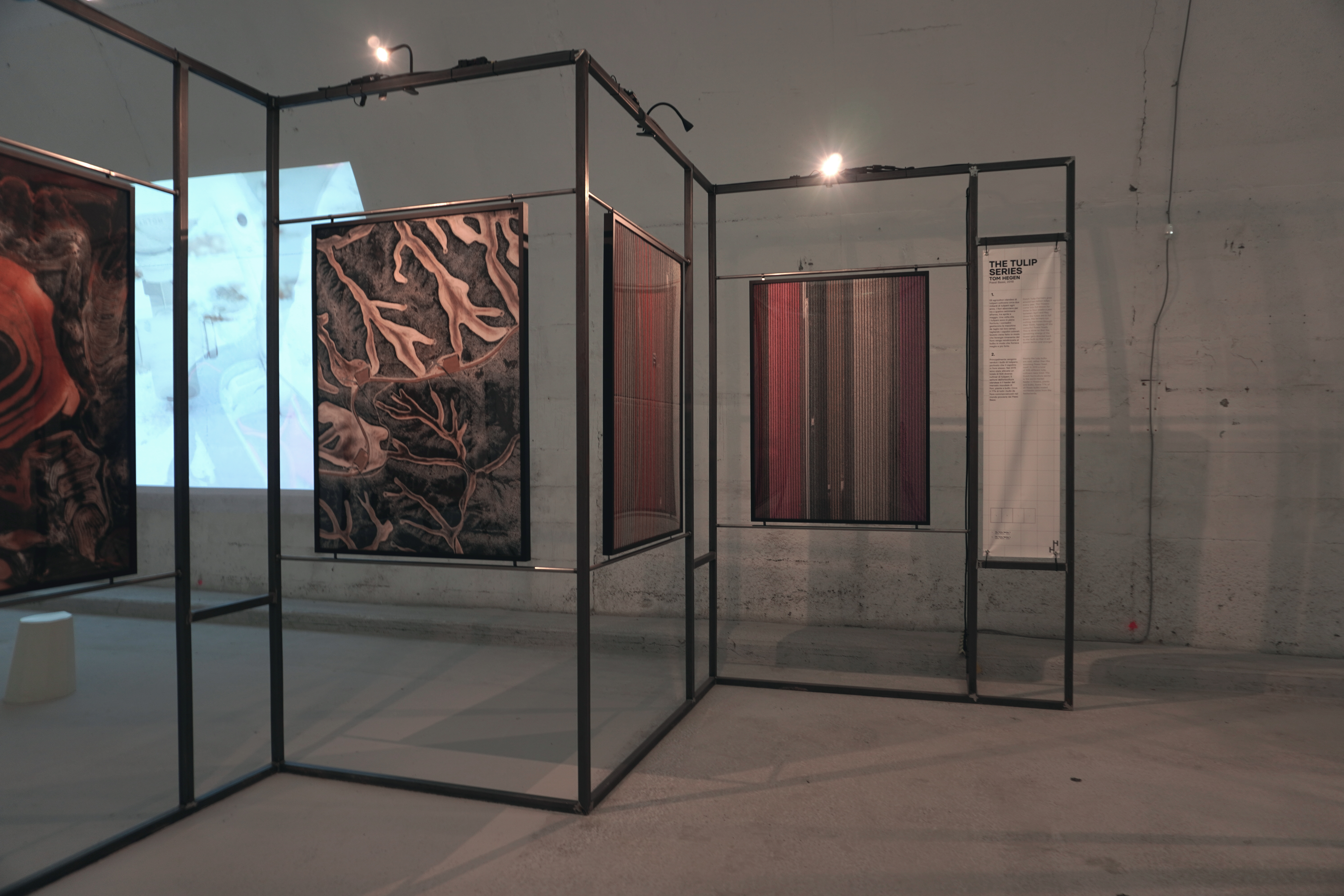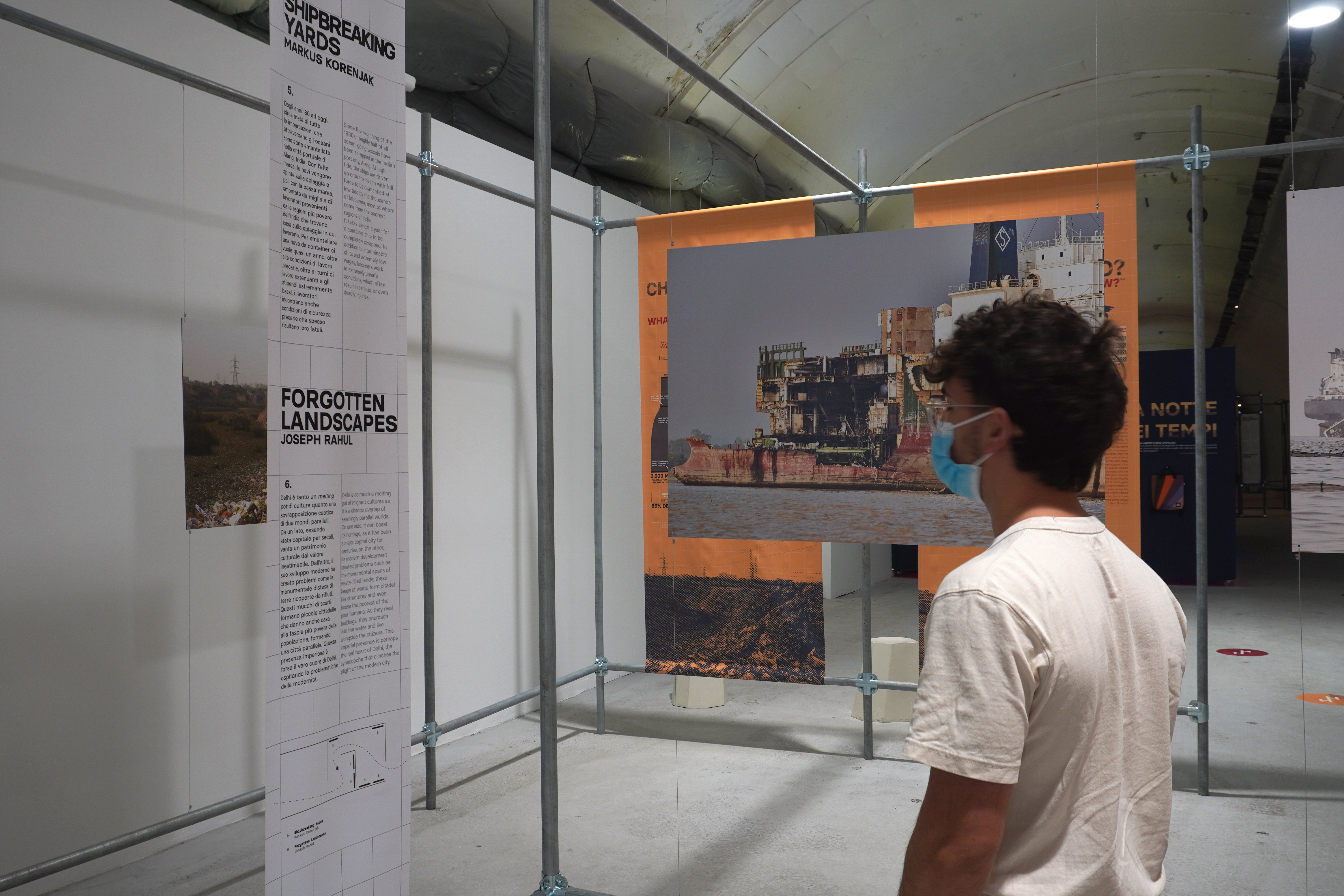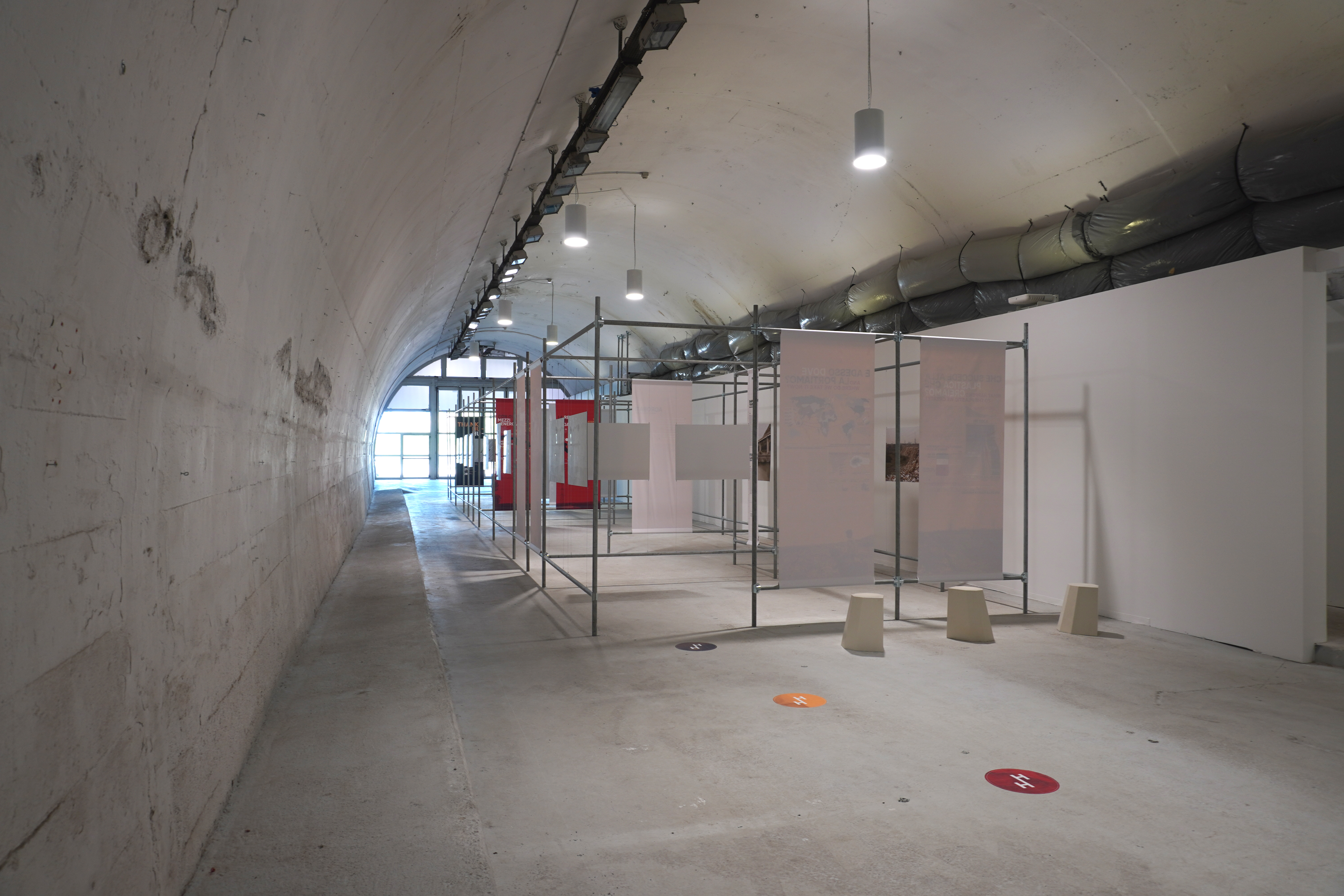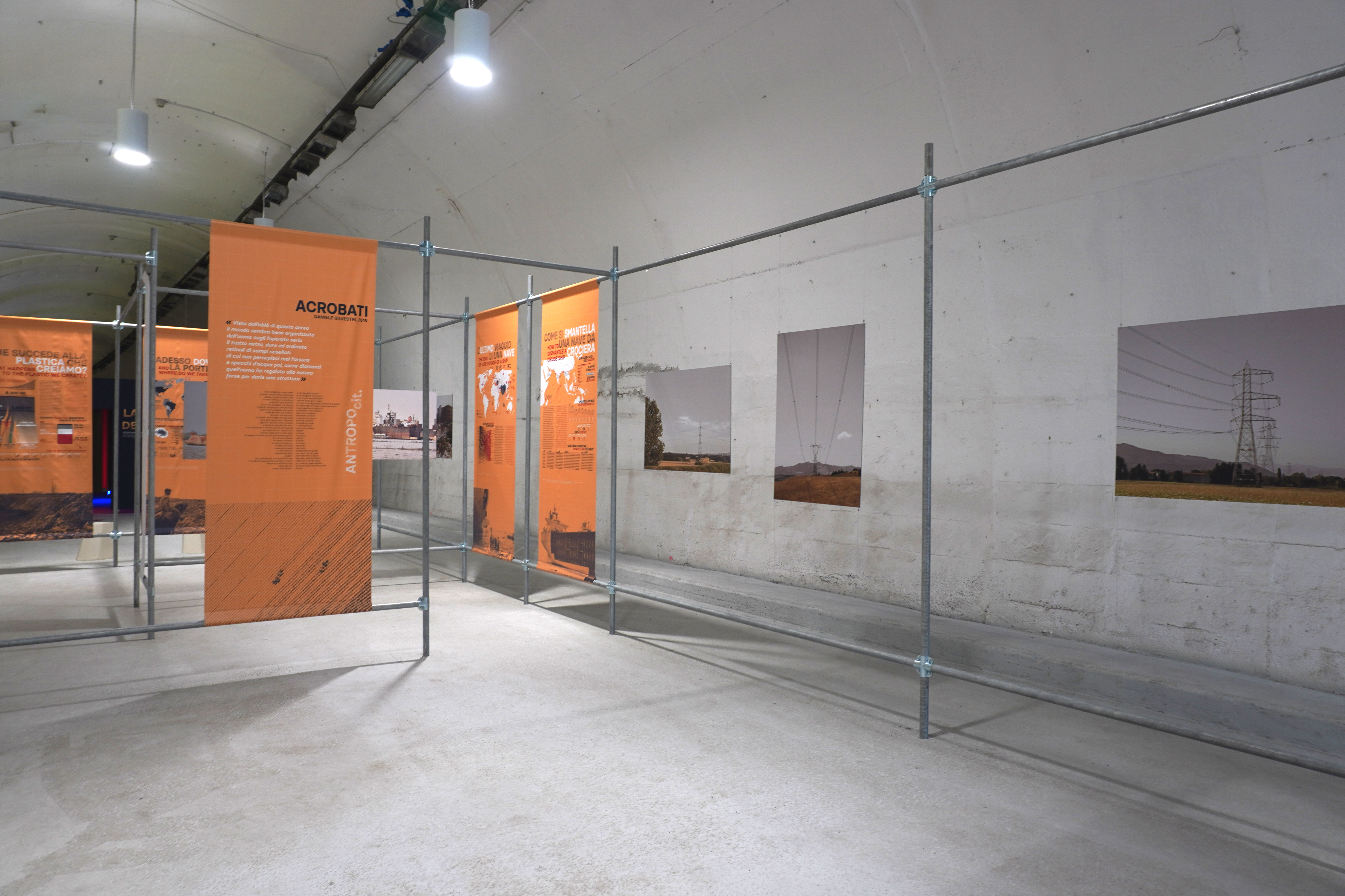 The exhibition is presented as a work-in-progress: the space is articulated according to a system of pavilion paths following a 3D grid development obtained with innocent pipes typical of building sites. The information panels based on the research shows reports and scientific insights, communicated through infographics and maps.