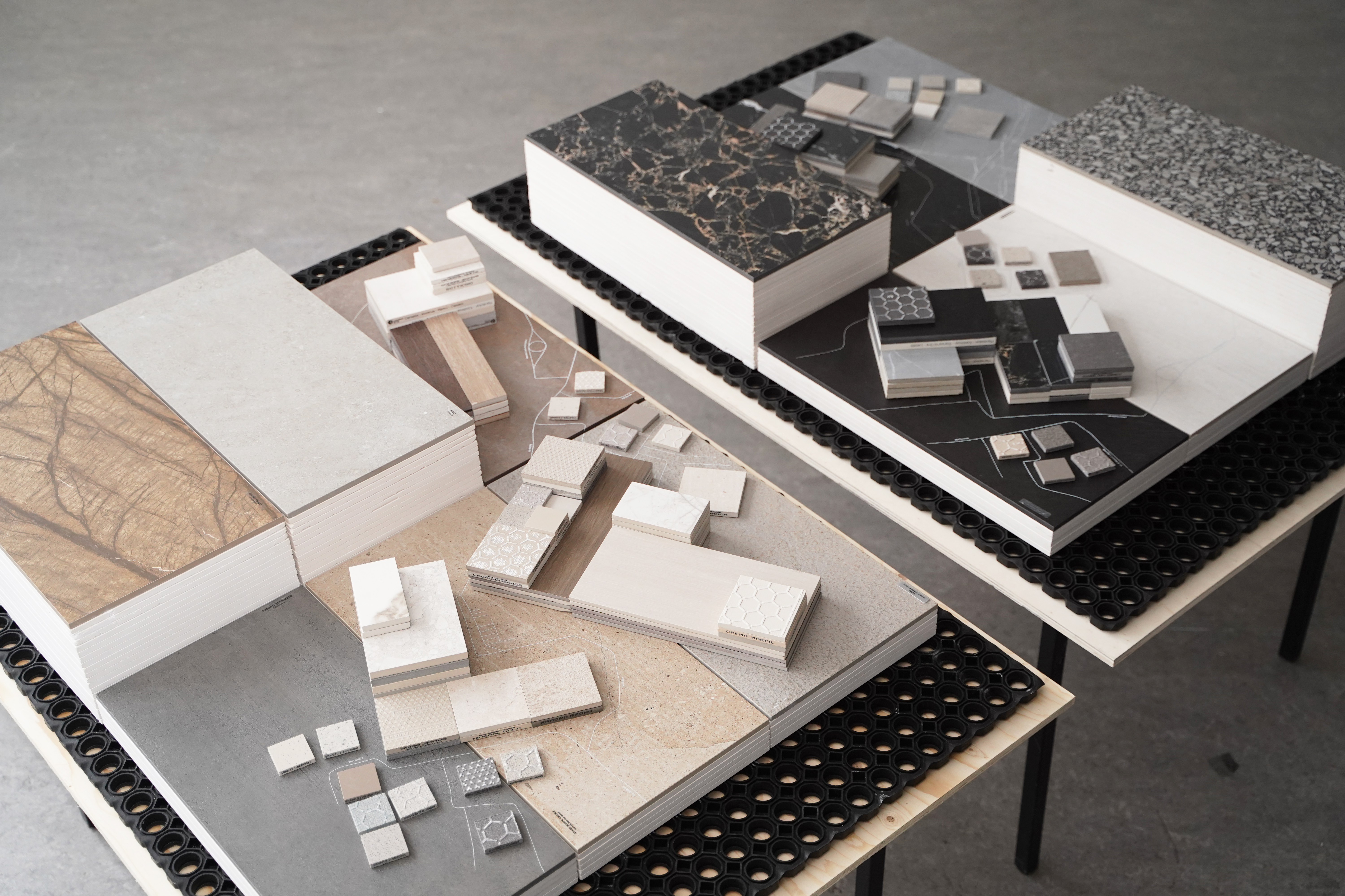 Casalgrande’s tile surfaces are characterised by the simulation of globally sourced materials such as wood, marble and stone in different scales. By manipulating the aesthetics of the tile, the factories generate an illusionary material, which the project aims to reveal.