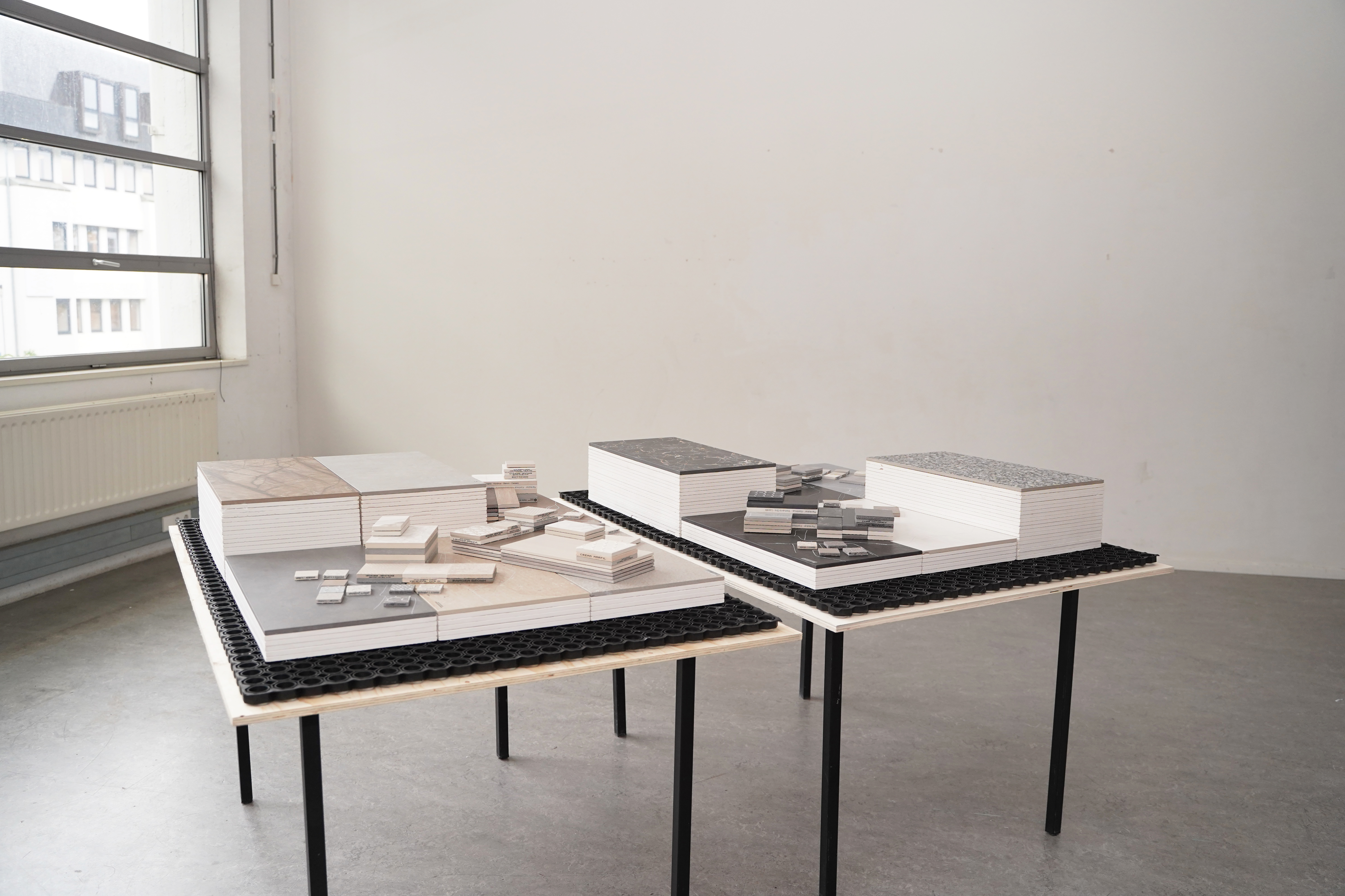 The project explores the links between industrial environments, dimensional scales and the displaced nature of production endemic to the region. The factories involved in the fabrication of porcelain stoneware tiles serve as the town's fulcrum. Combining scale models with field recordings of different phases of tile production, the installation reveals infrastructural relationships that tether production environments to sites of extraction. Through an analysis of the systemic processes of tile manufacturing, I consider the tile not only as an architectural artefact, but additionally as a symbol representing the connections between a multitude of local and global sites.