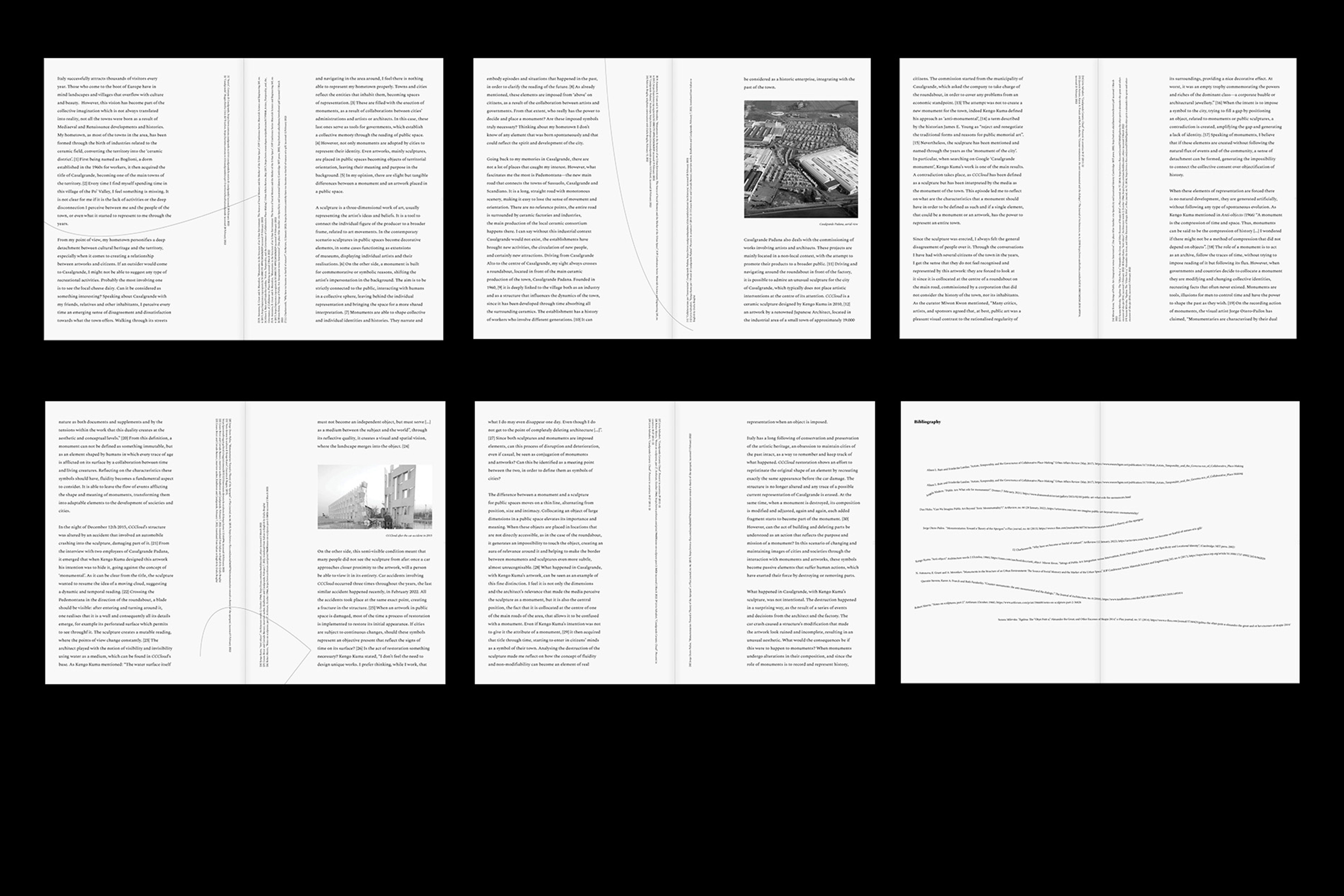 Recording history and embodying the concept of eternity are factors that can be considered when defining the roles of monuments. On the 12th of December, 2015, at 2 am, a car crash damaged a portion of Kengo Kuma’s sculpture. If a monument's purpose is to document and record such incidents, should it have been left damaged to represent this fact? "Mr. Kuma, Why Do I Keep Crashing Into You?" is an essay that reflects on the roles and definitions of monuments and their connection with public art. The essay delves into this matter by analyzing the artwork CCCloud, created by Japanese architect Kengo Kuma, which has been continuously and accidentally destroyed by car accidents over the years.