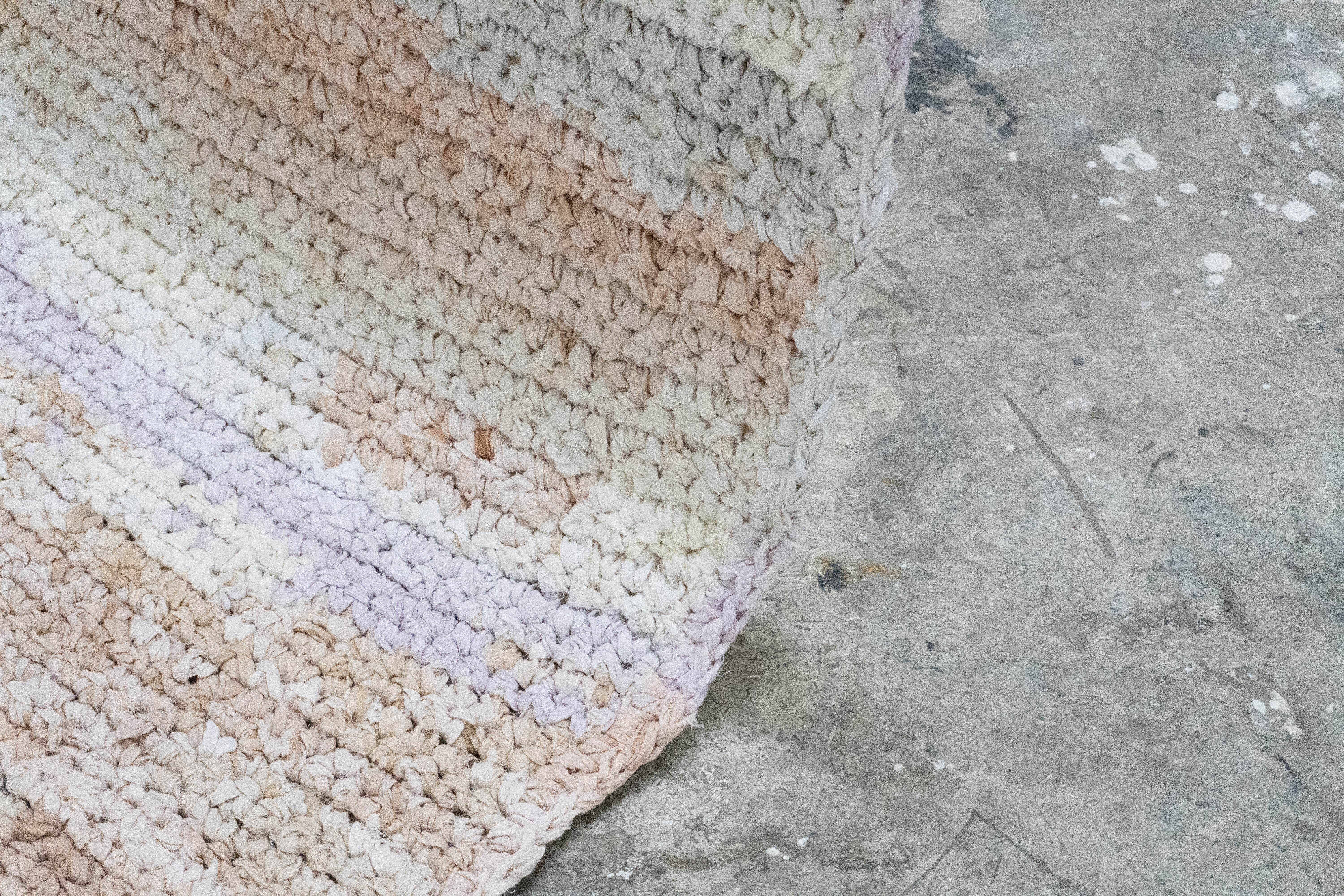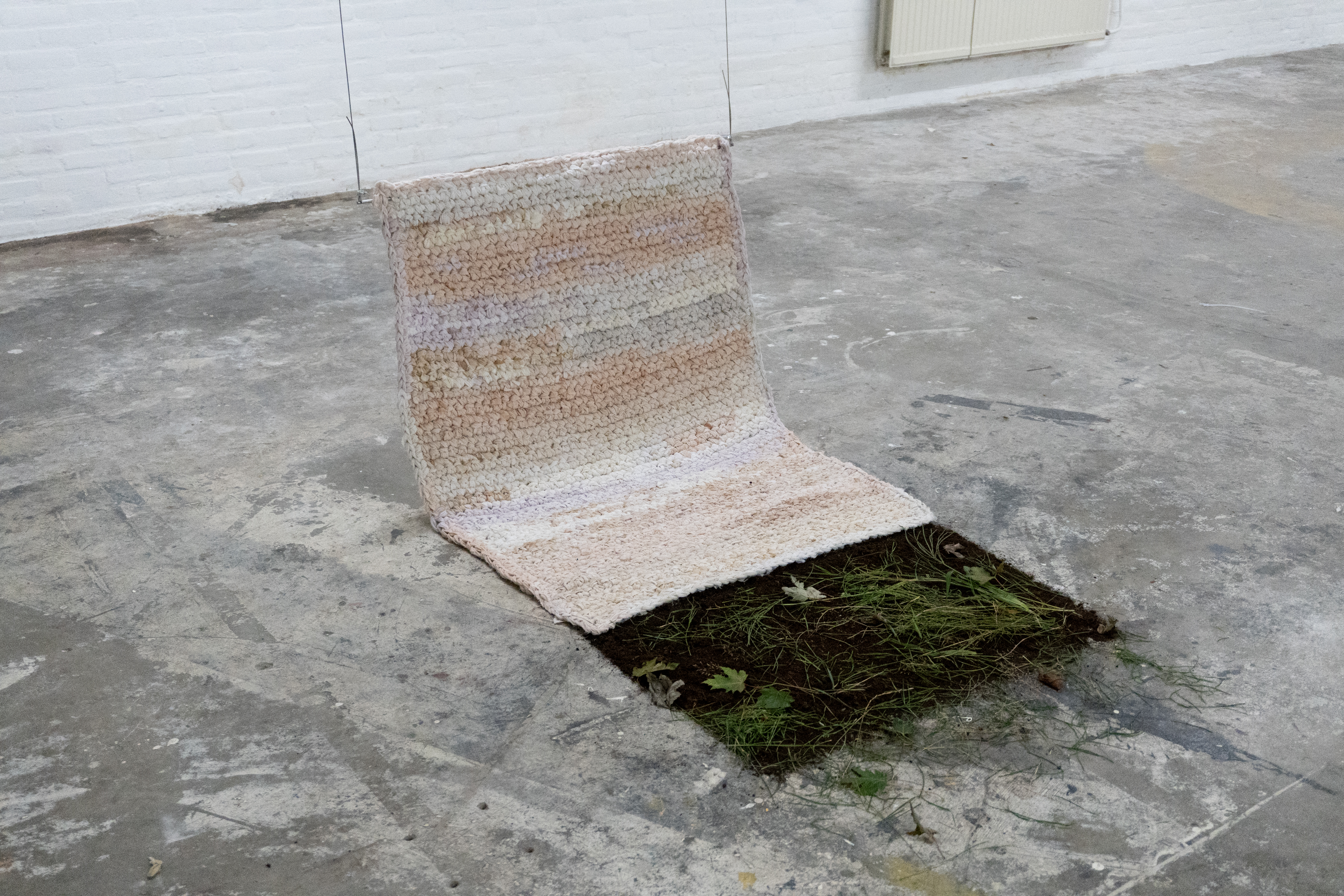 On the edge of liminal grounds is a cotton tapestry, dyed with pigments extracted from natural materials and constructed using crochet to abstractly represent and map landscapes.