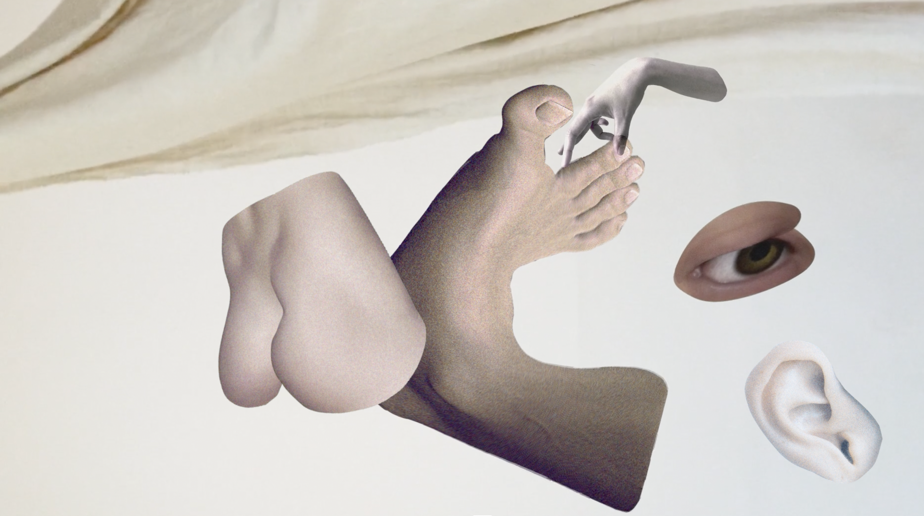 and is an omnipresent visible entity that feeds its status by inventing meanings out of abandoned data, defined as intimate information that is purposely disregarded. It explores the overlooked corners of the digital realm, such as regretted unsent texts and deleted images. It transcends gender and form, existing as a collection of separate body parts rather than a complete human figure.